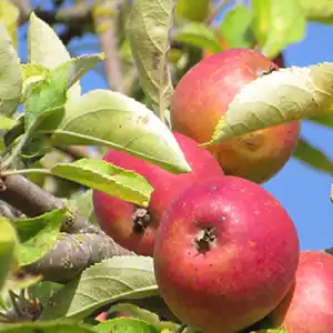 Aka Sans Richaumont - a very important heritage bittersweet cider apple variety found as a seedling by Marie Ménard at Lamballe farmers market on the coast of Brittany in 1910. It is an essential ingredient in robust Brittany style ciders that contribute to the production of Calvados. It has low susceptibility to scab, powdery mildew, and canker. Pollination group 5.