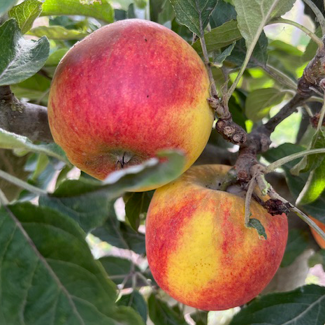 A cross between Ingrid Marie and Elstar, this is a modern "Cox" like variety (Kent 2004) that boasts a fantastic aromatic taste that is both sweet and balanced. This variety crops heavily producing small, attractive fruit. Pollination Group 4.